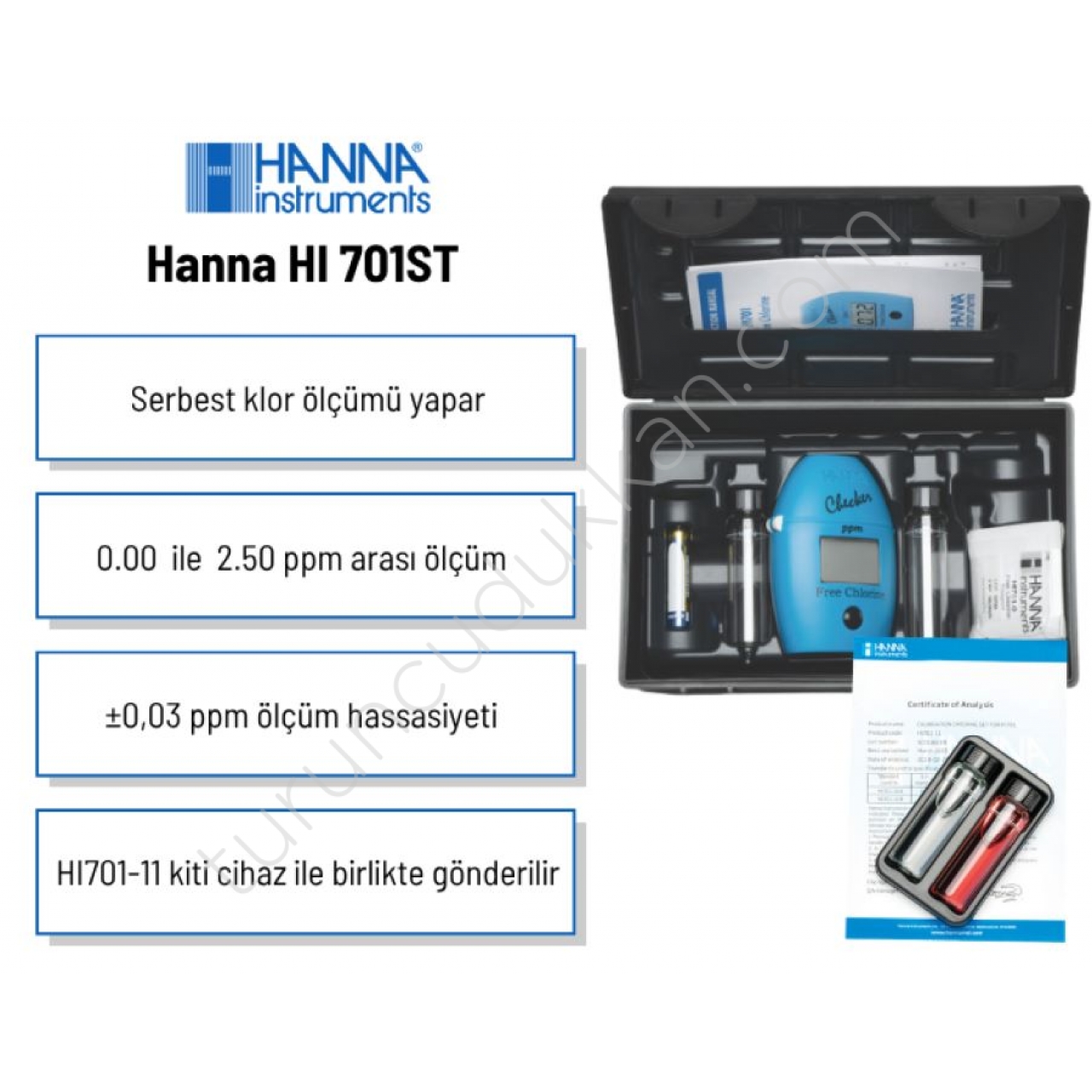 - Hanna HI701ST serbest klor ölçer cihazı, pratik kullanımı sayesinde sıvılardaki serbest klor seviyesini kısa sürede ölçmenizi sağlar. Kolay arayüzü sayesinde kullanıcı hatalarını en aza indirir.