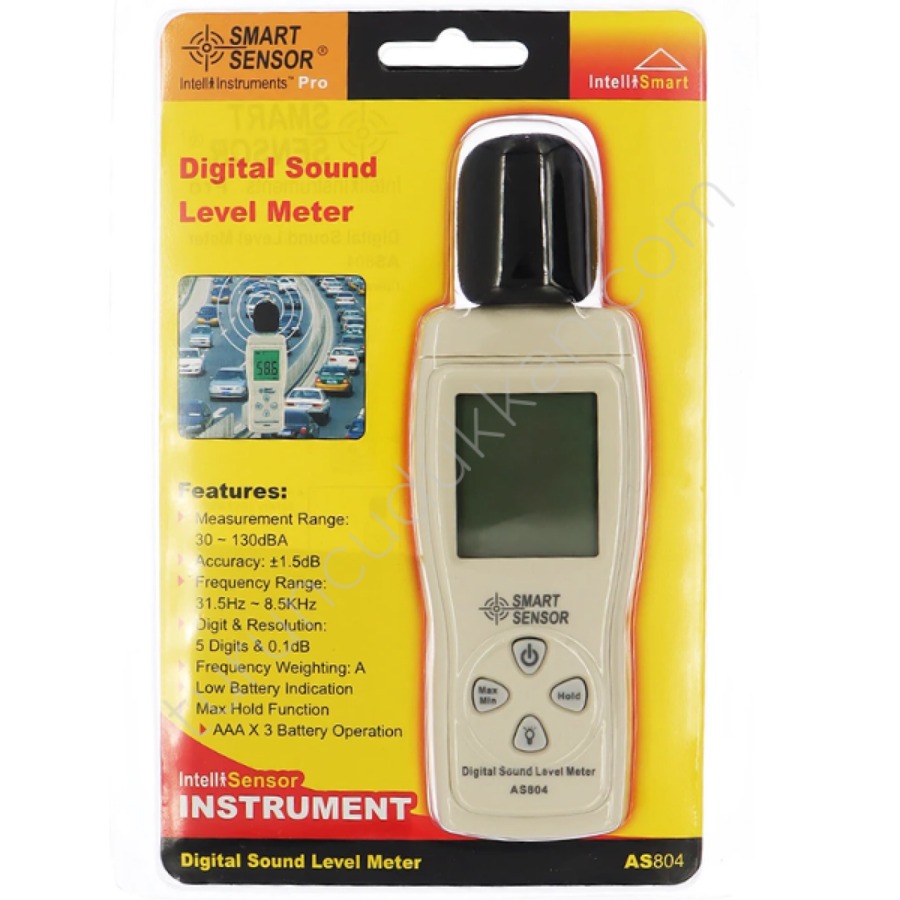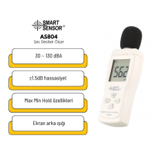 Smart Sensor AS 804 Dijital Ses Ölçer; herhangi bir ortamdaki ses veya gürültü miktarını ölçerek dijital ekranında rakamsal bir değer olarak gösteren kaliteli ses ölçüm cihazıdır.
