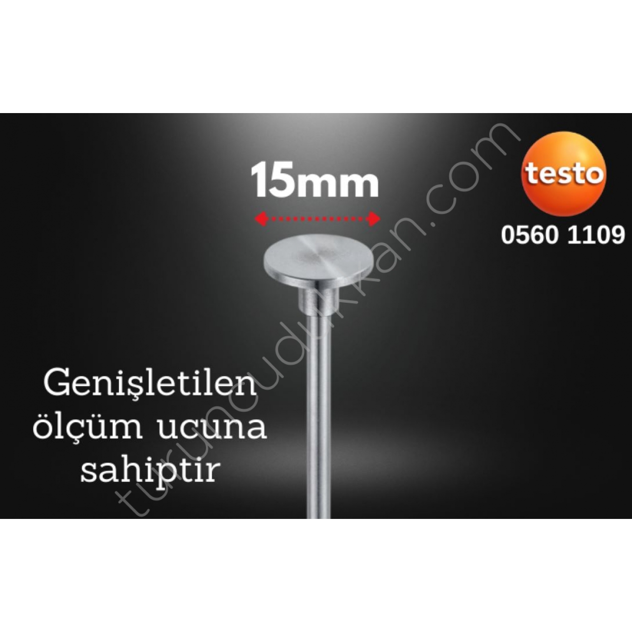 Testo 0560 1109 düz uçlu termometre; geniş düz ucu sayesinde yüzeylerin 300°C 'ye kadar sıcaklık değerini ±1°C hassasiyet ile ölçebilen ekonomik fiyatlı mini termometredir.
