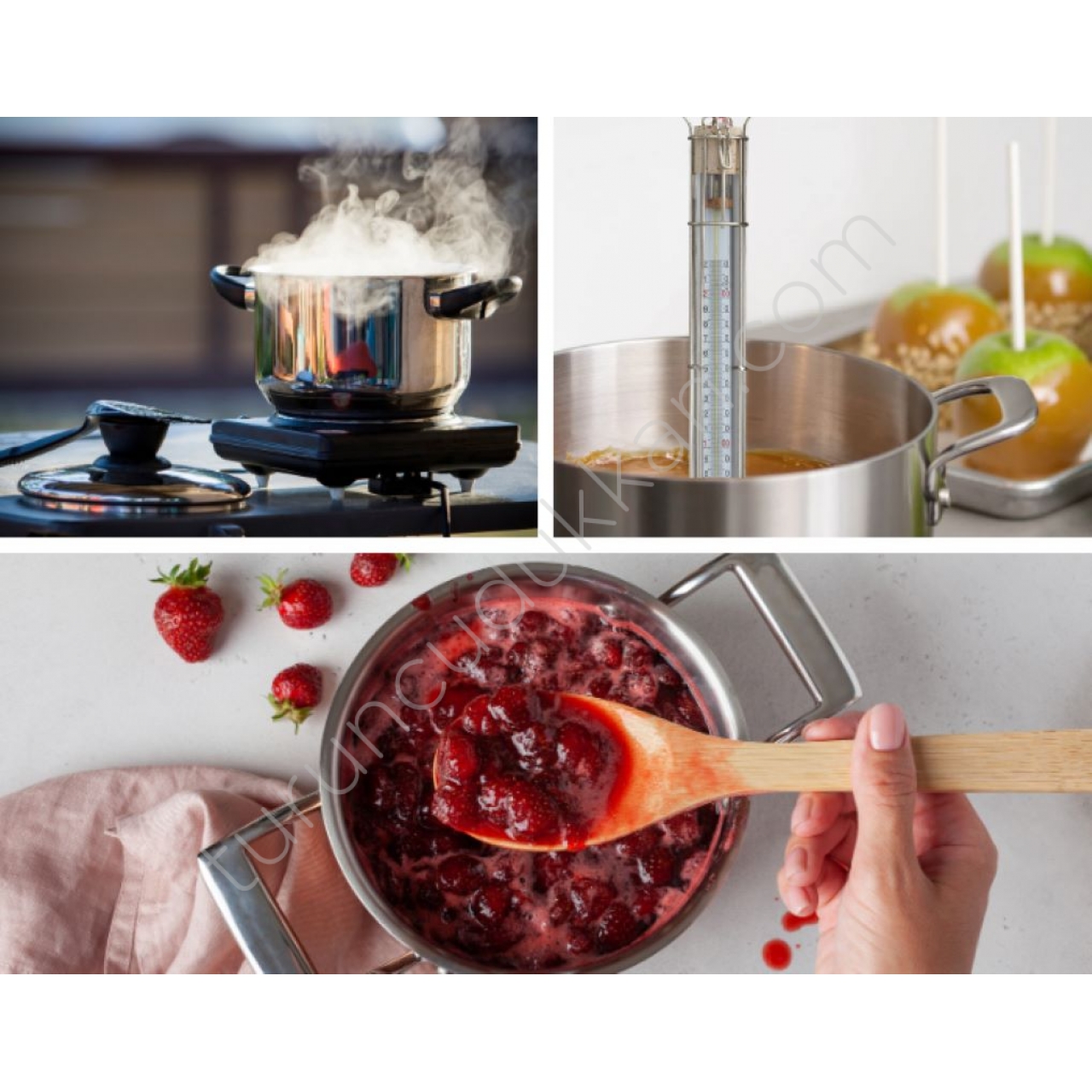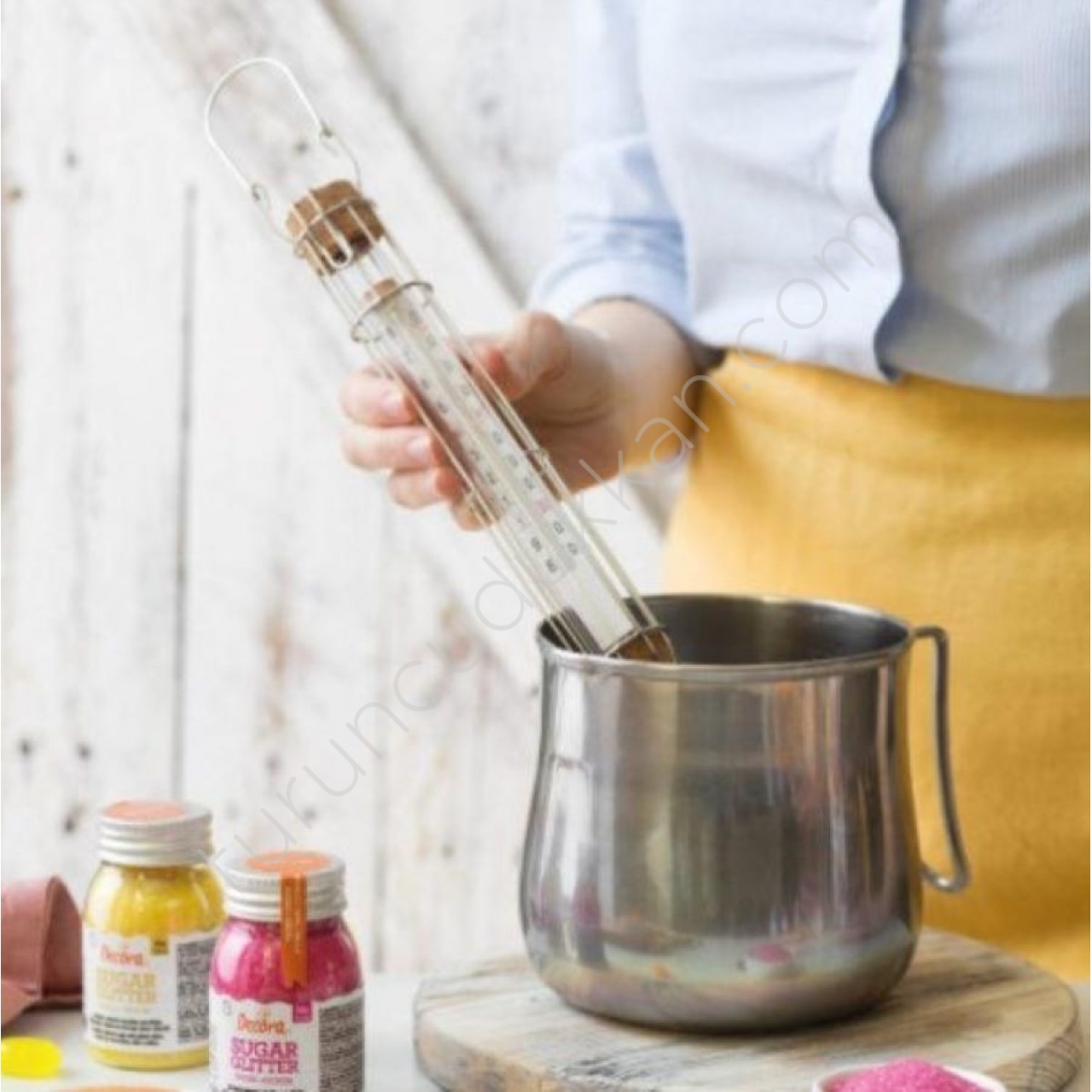 - Tatlı severler için ideal bir yardımcıdır. Bu şeker termometresi ile lezzetli şekerlemeler ve toffeler hazırlayabilirsiniz. Eğer gelenekselciyseniz, mükemmel kıvam için sıcaklıkları izlemenize yardımcı olması için bu klasik cam tüplü şeker termometresini kullanabilirsiniz.